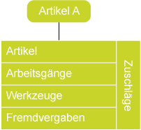 Nicht alle Artikel müssen alle Kostenkomponenten enthalten. Für manche Artikel nehmen Sie vielleicht nur Artikel und Arbeitsgänge auf.
