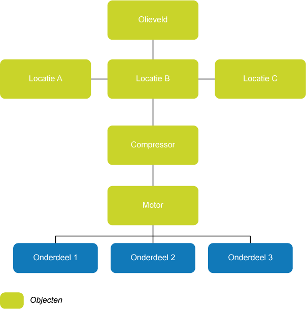 Een oliemaatschappij heeft een olieveld met verschillende sublocaties. Op een van die locaties bevindt zich een compressor. Het olieveld, de sublocaties en de compressor zijn allemaal objecten. De slijtagegevoelige onderdelen van de compressor zijn ook objecten, maar de overige onderdelen niet. Wanneer een monteur service wil verlenen op de compressor kan hij met de objectcode alle benodigde gegevens over de compressor opvragen.