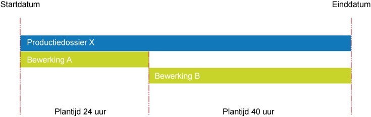 Er moet een productiedossier worden ingepland met twee bewerkingen. Deze bewerkingen vinden achter elkaar plaats.
